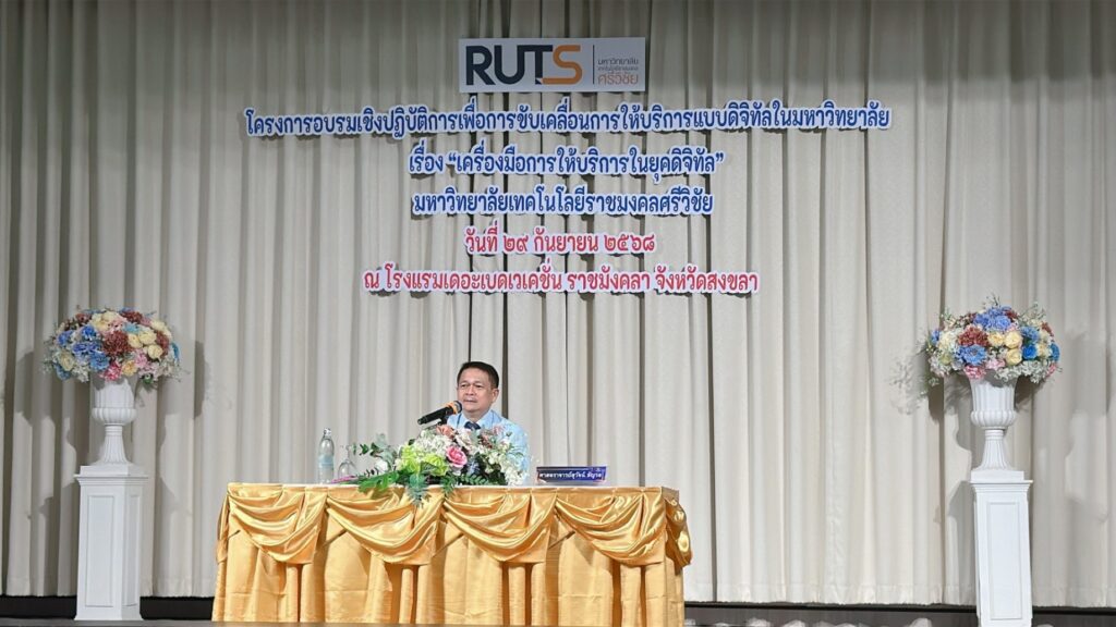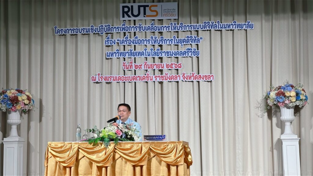 กองบริหารงานบุคคล มหาวิทยาลัยเทคโนโลยีราชมงคลศรีวิชัย จัดโครงการอบรมเชิงปฏิบัติการเพื่อการขับเคลื่อนการขับเคลื่อนการให้บริการแบบดิจิทัลในมหาวิทยาลัย เรื่อง “เครื่องมือการให้บริการในยุคดิจิทัล” ในวันที่ 29 กันยายน 2568 ณ โรงแรมเดอะเบด เวเคชั่น สงขลา อำเภอเมือง จังหวัดสงขลา ได้รับเกียรติจาก ศ.ดร.สุวัจน์ ธัญรส อธิการบดีมหาวิทยาลัยเทคโนโลยีราชมงคลศรีวิชัย เป็นประธานเปิดพิธี และนายสถาพร ขุนเพชร รองอธิการบดี พร้อม นายภาณุมาศ สุยบางดำ รองอธิการบดี ร่วมเป็นเกียรติในโครงการ