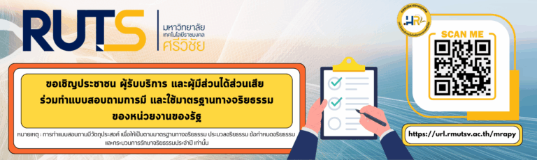 ข่าวประชาสัมพันธ์ ขอเชิญประชาชน ผู้รับบริการ และผู้มีส่วนได้ส่วนเสีย ร่วมแบบสอบถามการมี และใช้มาตรฐานทางจริยธรรมของหน่วยงานของรัฐ มหาวิทยาลัยเทคโนโลยีราชมงคลศรีวิชัย21 ตุลาคม 202521 ตุลาคม 2025