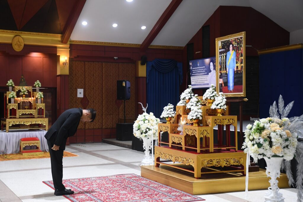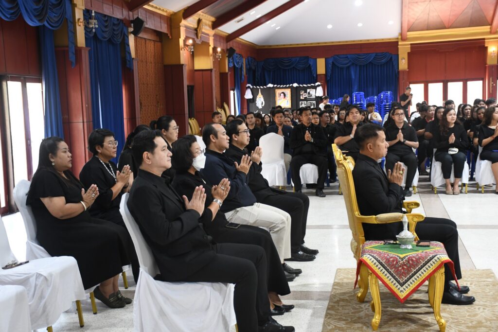โดย ผู้ช่วยศาสตราจารย์อุดร นามเสน รองอธิการบดี เป็นประธานในพิธี พร้อมด้วยคณะผู้บริหาร คณาจารย์ และบุคลากร ร่วมพิธีถวายราชสักการะ สมเด็จพระนางเจ้าสิริกิติ์ พระบรมราชินีนาถ พระบรมราชชนนีพันปีหลวง ภายในพิธีมีการนิมนต์พระสงฆ์ จำนวน 10 รูป และร่วมยืนสงบนิ่งถวายความอาลัย เพื่อแสดงออกถึงความจงรักภักดีและน้อมรำลึกในพระมหากรุณาธิคุณอันหาที่สุดมิได้ ของสมเด็จพระนางเจ้าสิริกิติ์ พระบรมราชินีนาถ พระบรมราชชนนีพันปีหลวง